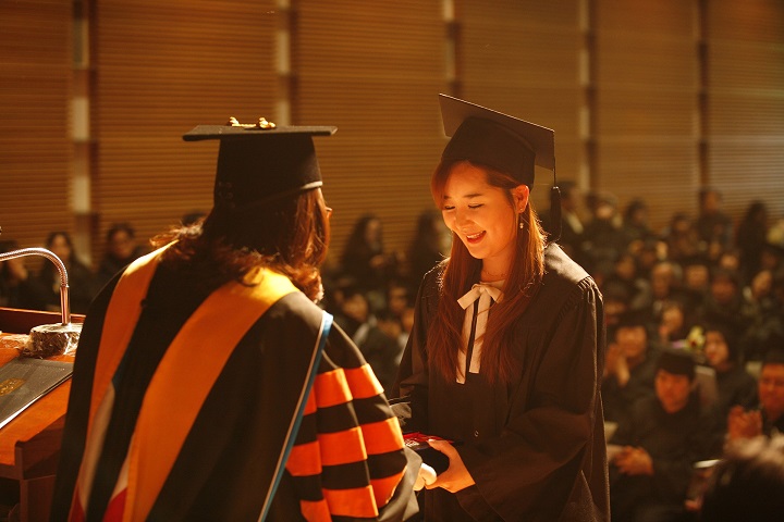 세계사이버대학은 2016년 2월 18일(토) 서울 용산구 백범김구기념관 대회의실에서 2016학년도 제 15회 전기 학위수여식을 개최하였다. 졸업생과 가족 내·외빈 등 약 300여명이 참석한 이날 행사에서 조현주 총장은 축사를 통해 인생의 제 2의 도약을 꿈꾸는 졸업생들의 앞날을 축복했다. 이번 학위수여식에서는 573명이 전문학사 학위를 수여 받았고, 학과 성적 최우수 졸업생에게 수여되는 ‘최우수상'은 피부미용뷰티학과 박선영 학생이, 학교 및 학생회 발전에 기여가 큰 졸업생에게 수여되는 ‘총장공로상’은 NGO다문화복지학과 서민 학생에게 수여되었다. 그 외에도 총 27명의 졸업생에게 각종 시상이 이어졌으며, 학위수여식 후에는 참석자 전체가 졸업을 축하하기 위해 기념 촬영을 했다. 이로써 세계사이버대학은 2001년 개교한 이래 현재까지 총 1만3천여명을 상회하는 각계각층의 동문을 배출한 명실상부한 최초의 원격전문대학으로서의 위상을 널리 과시하고 있다. |